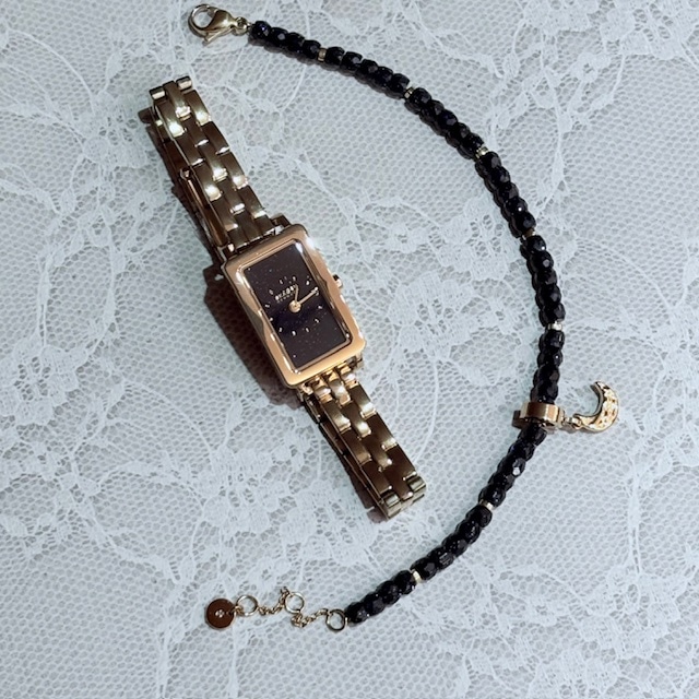 ブラック×ネイビーの色合いにラメがきらめく文字盤が大人かわいいを演出してくれます!