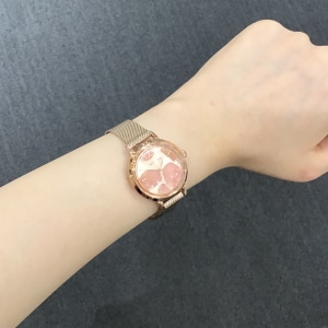 文字盤の風防(ガラス部分)が丸く盛り上がるような形なので、水の中に花びらが浮いているかのような、幻想的で綺麗なデザインに仕上がっています♪