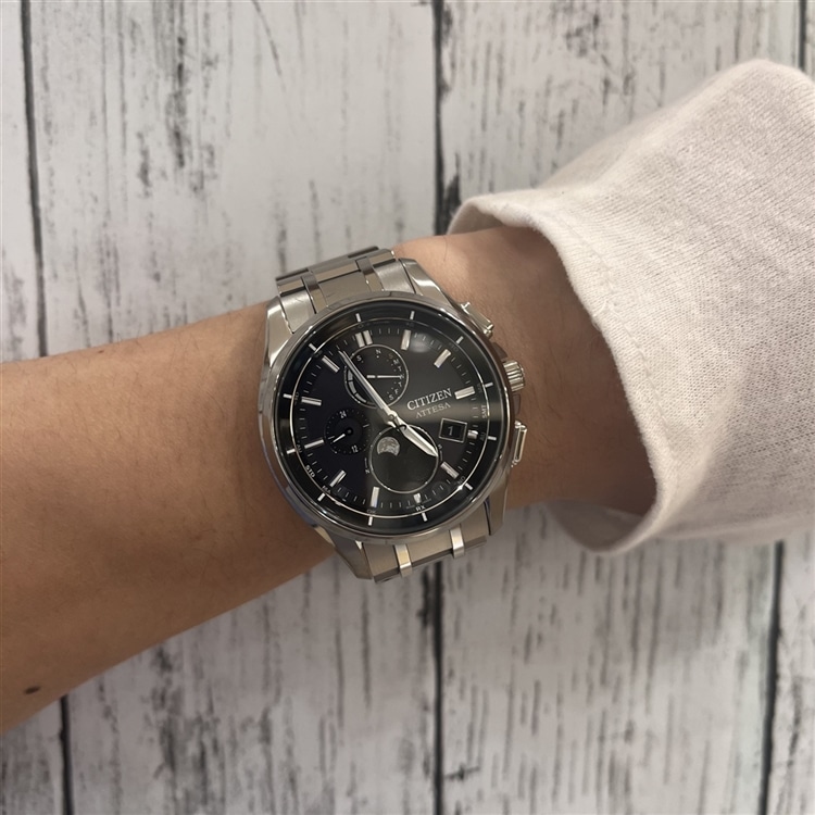 アナログ式光発電腕時計で世界初*、月齢自動計算機能「ルナプログラム」が搭載されており、6 時位置のムーンフェイズ部分に月齢をが自動表示されることが大きな特徴となっております。