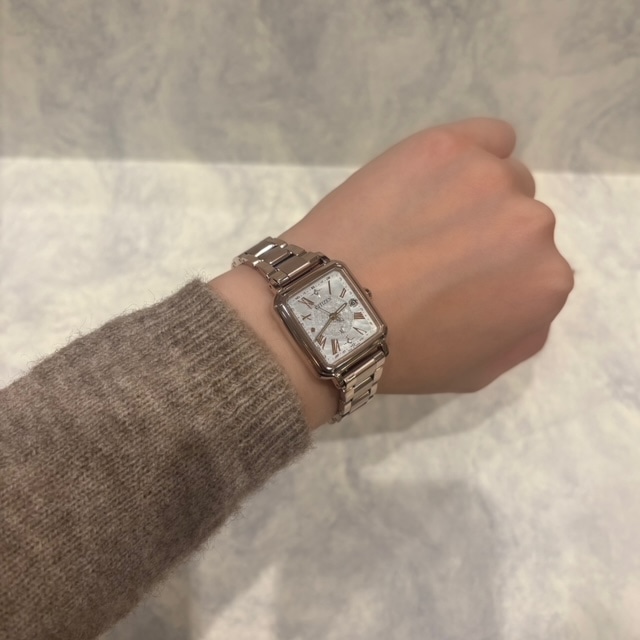 文字盤は、ほんのりとベージュカラーが重ねられ、中央は繊細なアンティークレース