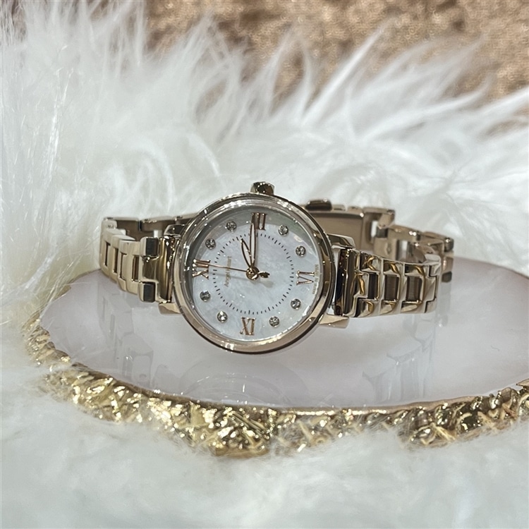 インデックスに施された8石のクリスタルが、お手元の動きに合わせて煌めくのも見逃せない特徴です。