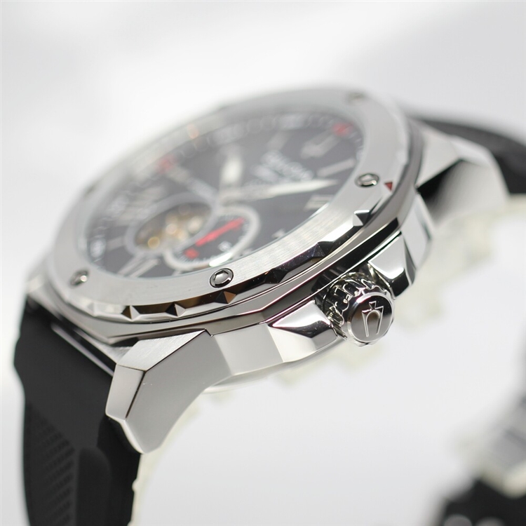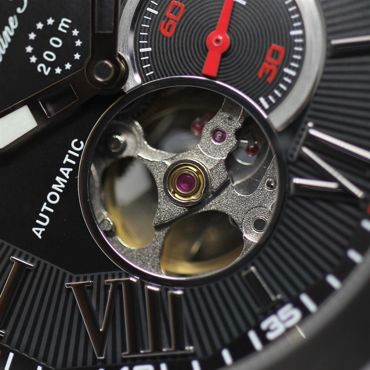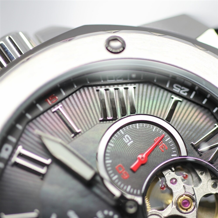 機械式腕時計で中の機械の動きが見えるオープンハート仕様。