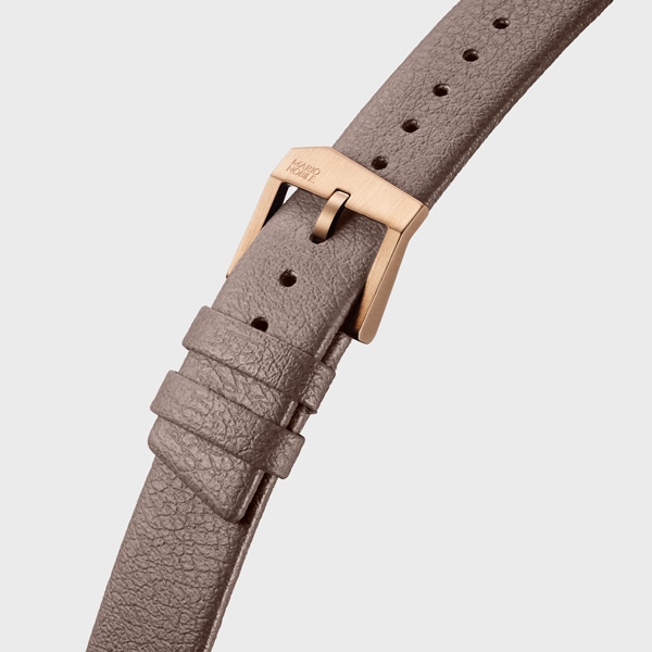 ピンクゴールドのケース組み合わせが、洗練された印象を演出。