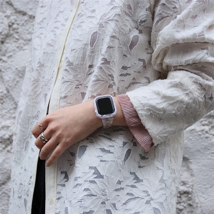 淡いピンクのレジンベルト&ケースなら、おしゃれで柔らかい印象に。
