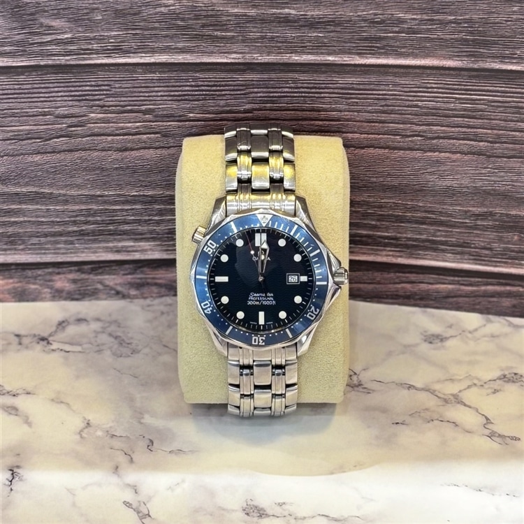 デザイン面では、アイコンともいえる 波模様のネイビーダイアル が特徴で、スポーティーさの中にオメガらしい上質さをしっかり感じられます。堅牢なケースと相まって、海を想起させる爽やかな存在感を放ちます。