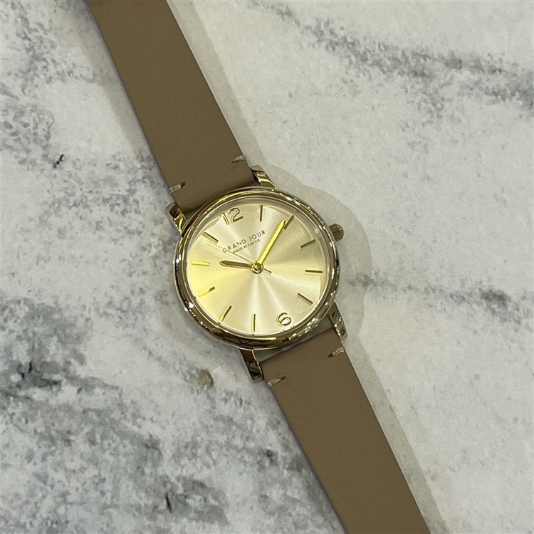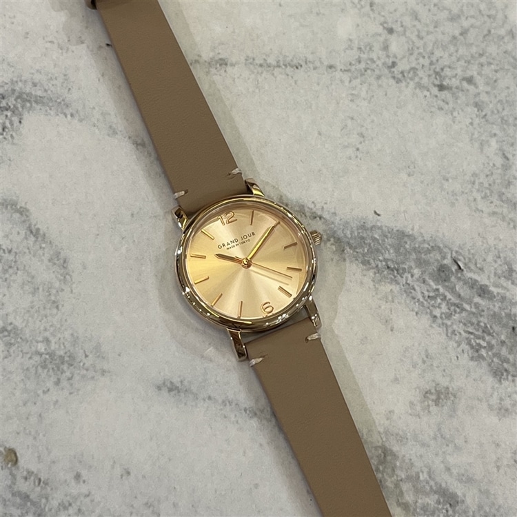 光が当たると文字盤のサンレイ加工がふわっと輝き、手元が一気に華やかに。