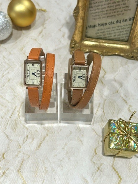 手首に2周するレザーストラップが細くしなやかに重なることで、