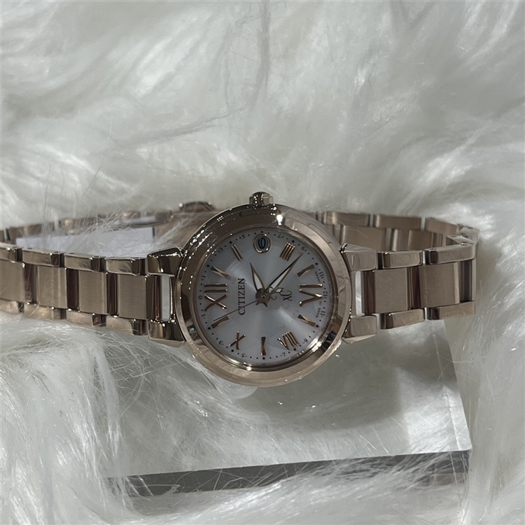 透き通る花びらの重なりをイメージした文字板と、草花のようにのびやかで柔らかな印象のインデックスが特徴で、光の角度によって淡く繊細に浮き出る花びらのパターンが女性らしい手元を演出します。
