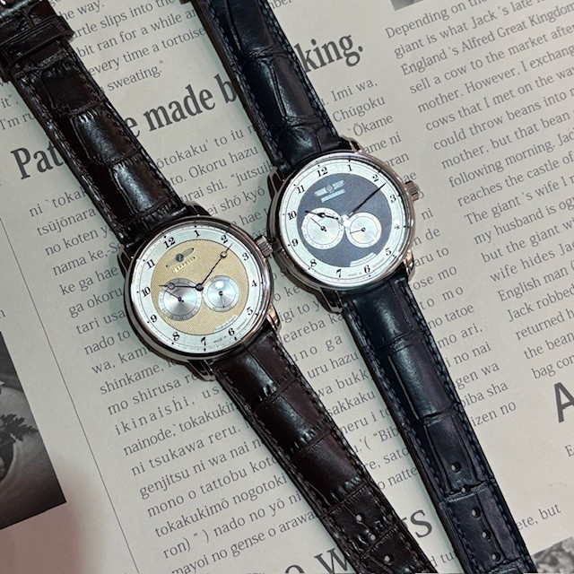 文字盤にはそれぞれ24時間計とスモールセコンドを搭載しています。