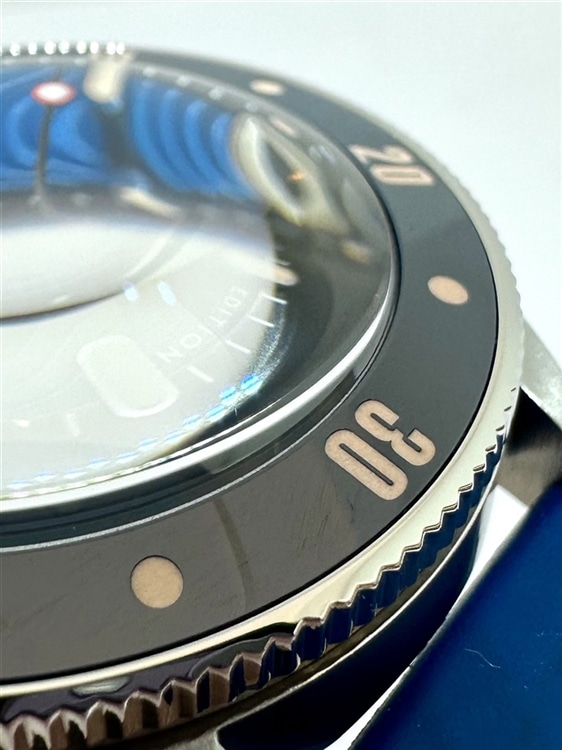 ベゼルはセラミック製の逆回転防止ベゼル、防水性は30気圧防水。