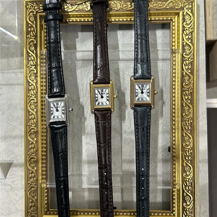 ヴィンテージ調の雰囲気を漂わせながらも、優しさと落ち着きを感じるデザイン。サイドに丸みを持たせたケースが、洗練された優しさを醸し出します。ローマ数字で統一したインデックスと型押しを施した牛革バンドが、落ち着きのあるクラシカルな表情を際立たせています。少し大きめのりゅうずが小ぶりなケースにアクセントを添えます。