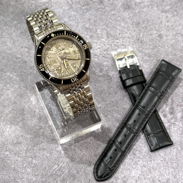 宇宙から飛来したメテオライト(隕石)を採用した文字盤は、実物を見るともっと美しいです!