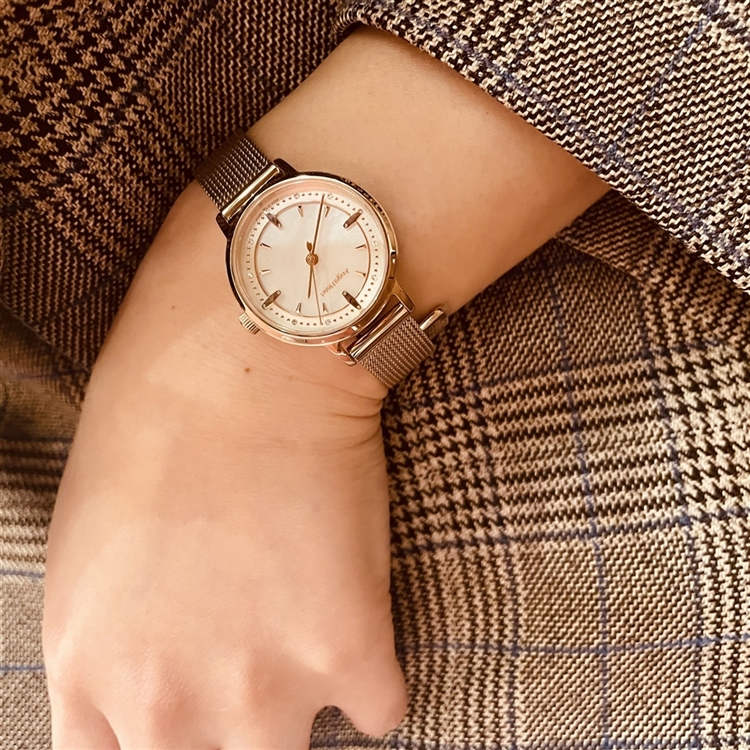 3モデル全てにワンタッチで交換可能なピンクゴールドのメッシュベルトがセットになっていて