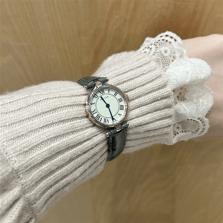 ラウンドケースにはローマ数字を使用し、クラシカルな雰囲気を演出◎