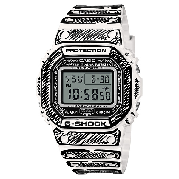 ブラックベースのDW-6900JVはホワイトのグラフィックを施し、マット仕上げでシャープな表情に。ホワイトベースのDW-5600JVはブラックのグラフィックと光沢仕上げにより、強いコントラストと存在感を演出します。両モデルとも、Joshuaの手描き風フェイスデザインが特徴で、バックライト点灯時には彼のトレードマーク「Cone」が浮かび上がります。特製パッケージ付きのスペシャルモデルです。