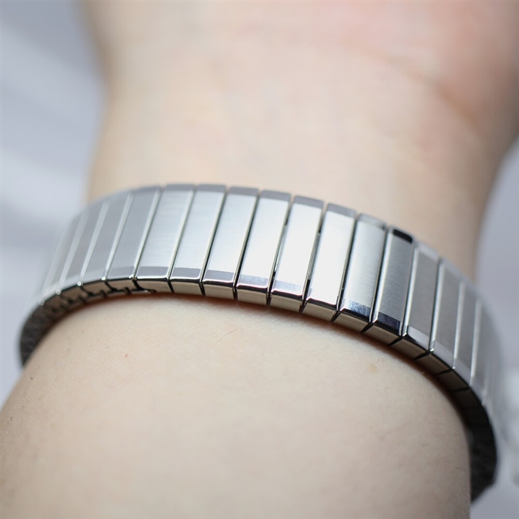 ベルトは蛇腹タイプと呼ばれる伸縮性のある構造のベルトを採用しているため着け外しが簡単。