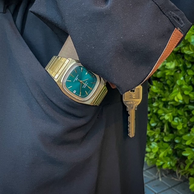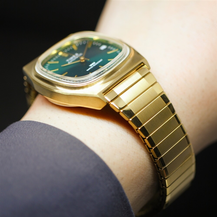 春に出たばかりの新色TW2Y67700はゴールドケースにサンレイ仕様のグリーンダイヤルが非常に美しい