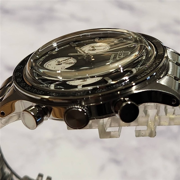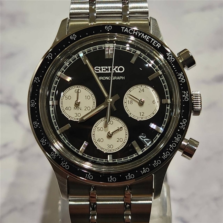 トレンドになっているヴィンテージライクな時計で、日本人の手元にしっくりくるサイズ感約39㎜の小径クオーツクロノグラフモデルです。