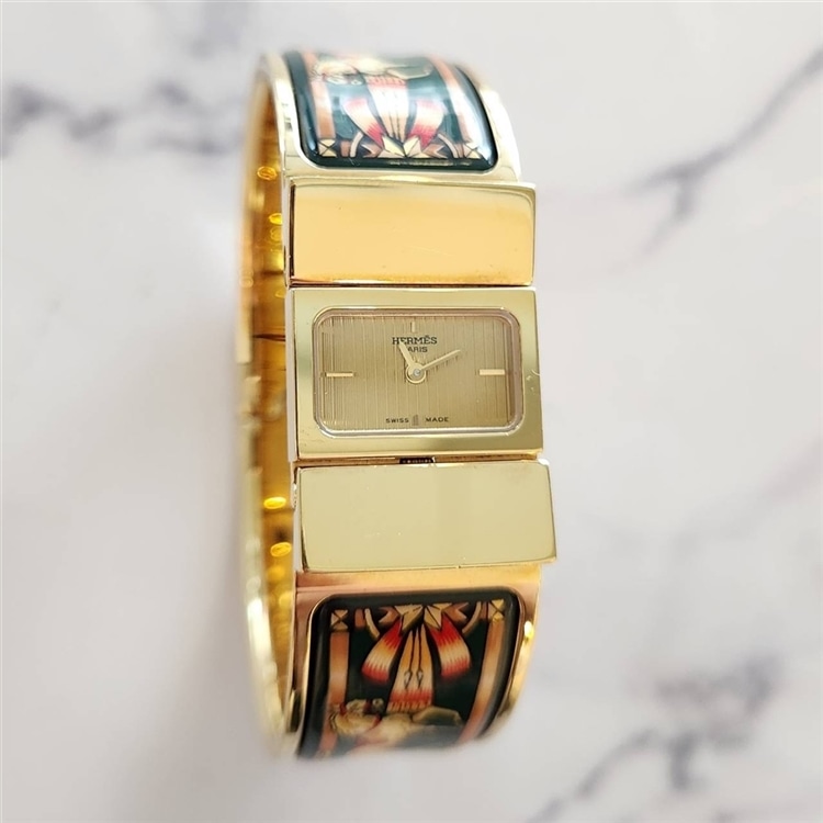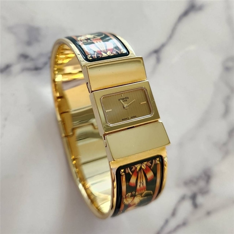 本日はエルメスからエマイユの美しい装飾が特徴的なバングルウォッチ「ロケ」をご紹介いたします!