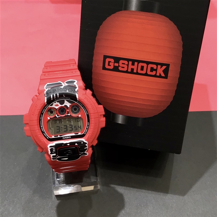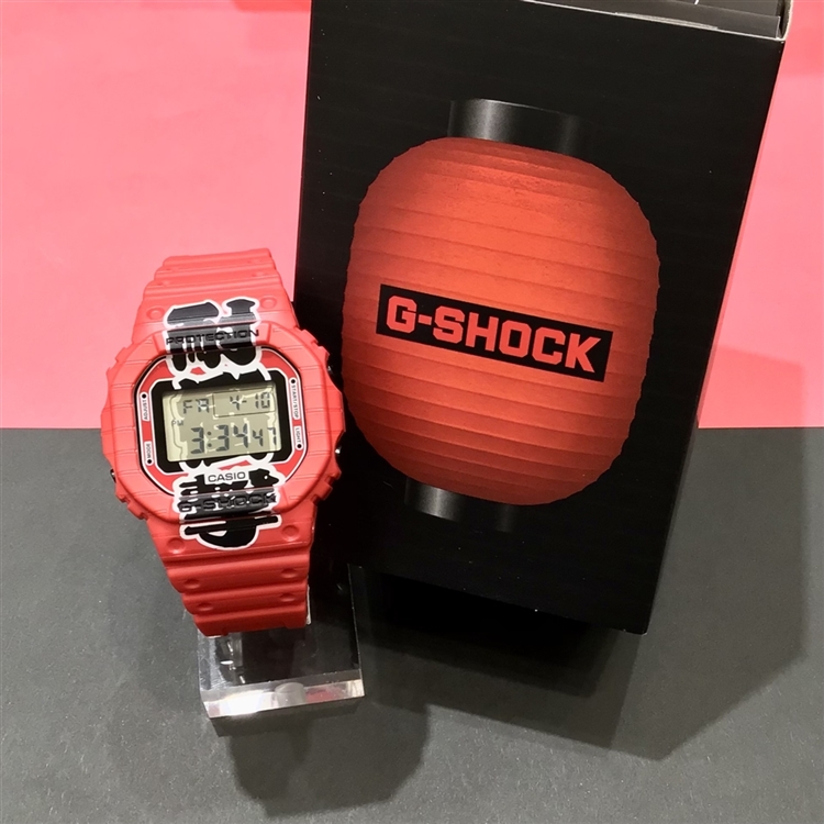 提灯の赤をベースカラーに、G-SHOCKの最たる特徴である『耐衝撃』を目立つ位置にプリントしたユニークデザイン。