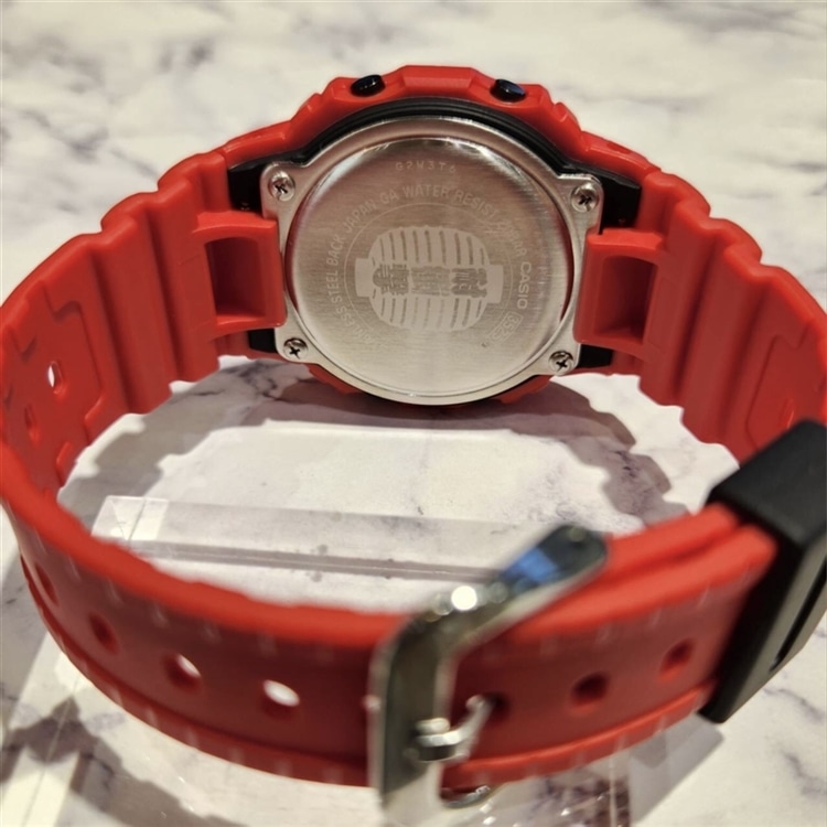 日本ならではの文化「赤提灯」。提灯の赤をベースカラーに、ベゼルからバンドまで、G-SHOCKの最たる特徴である「耐衝撃」のプリントを配したユニークなデザインでコーディネートのアクセントになります♪