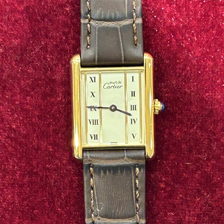 その最大の魅力は、伝統ある「タンク」の美学を、シルバー925に18金を厚く重ねた「ヴェルメイユ」技法によって、より身近に楽しめる点にあります。現行モデルにはない多彩な文字盤のデザインや、アンティーク特有の柔らかな風合いは、手元に唯一無二の個性を添えてくれます。