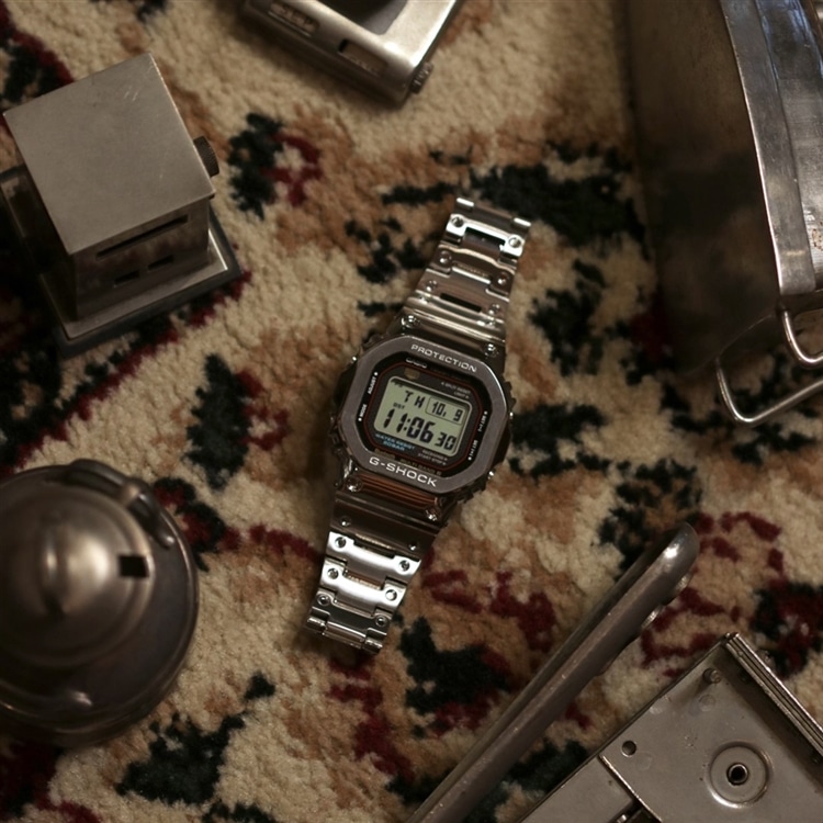 1983年に誕生したG-SHOCK初代モデル“DW-5000C”のダイアルカラーを纏ったフルメタルモデル。ブランドカラーかつ挑戦し続ける情熱を意味するレッド、高い防水性を表すブルー、ショックレジスタントを意味するイエローをあしらったブランドを代表する一本。カジュアルでありながら高級感を纏う、これひとつでその日のスタイリングをまとめてくれる存在。