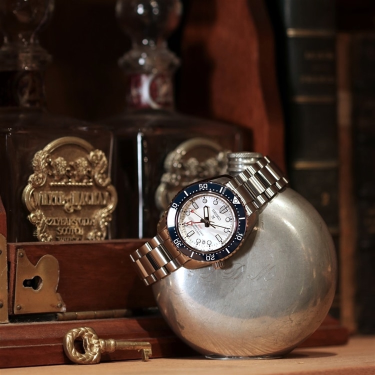 300m空気潜水用防水と新型スライドアジャスターバックルによりスペックアップした、ダイバーズ「1968ヘリテージGMT」。ダイビングやヨットを始めとするマリンスポーツのあるライフスタイルを想起させるブルーセラミックベゼルとホワイトシルバーダイヤルのコンビネーションが、爽やかでクリーンなデザインが魅力のモデル。