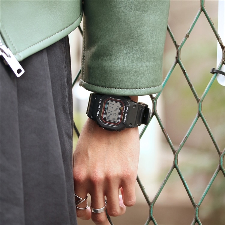 価格が一番手頃のスタンダードな「DW-5600RL-1JF」。時計もファッションの一部、様々なスタイリングに合わせて使いこなしたい、ファッションを愛する方にはこちらがオススメ。ラフにガシガシ使うことで、自分なりの"味”を出すエイジングも一つの楽しみになるかもしれません。