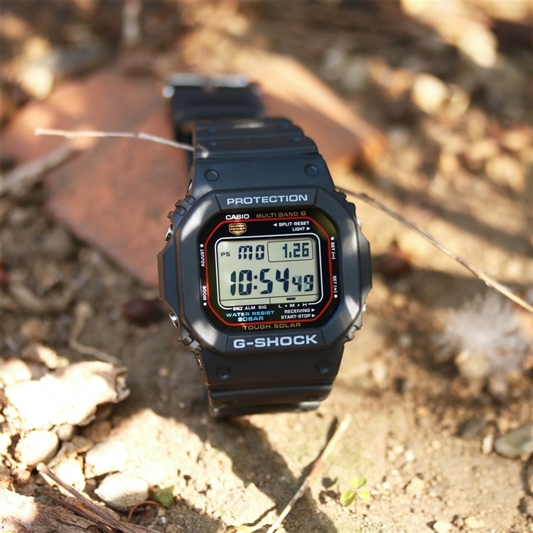 タフソーラーとマルチバンド6を搭載した「GW-M5610U⁻1JF」。アウトドアやスポーツも好きな方にはこのモデル。電池切れの心配もないし、電波受信ができる環境であれば時間もズレない。そのまま仕事に着けて行くことだってできちゃう実用性です。迷ったらコレで!