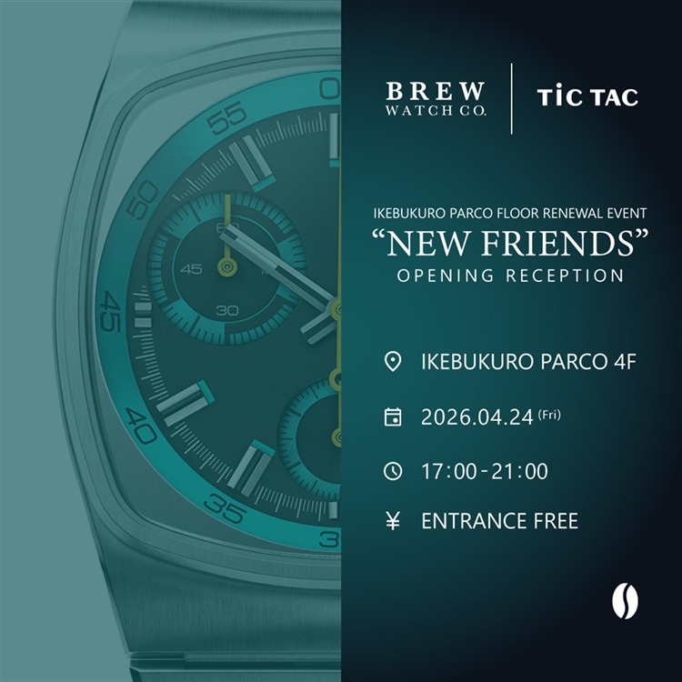 4月24日(金)17時より、昨年7月にリニューアルオープンしたチックタック池袋店のある池袋PARCO 4Fにてリニューアルイベントを開催。チックタックでは「BREW WATCH CO.」の日本未発売モデルを数量限りでご用意。さらに、ブランドコンセプトに因んだコーヒーをご来店いただいた皆様にお配りいたします。