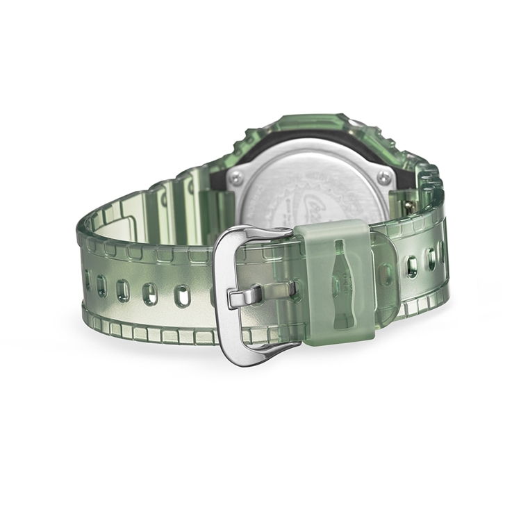 コカ・コ―ラといえば、アイコニックなコンツアーボトルのような透けたカラーリングをベゼルとバンドに採用。ヴィンテージのガラスボトルを想起させるトランスルーセントグリーンのカラーリングです!