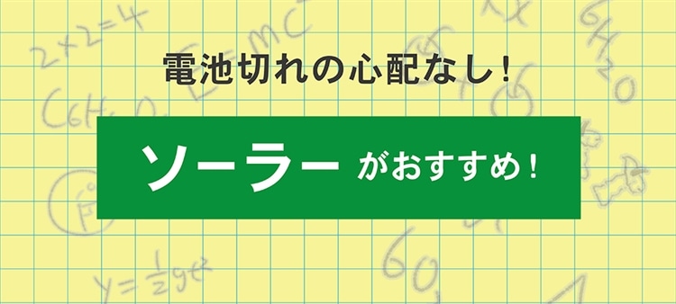 試験中の電池切れが心配な方は、ソーラータイプなら安心です。太陽光だけでなくても、屋内の蛍光灯の光でも充電します。また大人びたデザインも多いので、進級祝いも兼ねて腕時計を贈るのも素敵。大学受験なら就活も見据えて、スーツとの合わせやすさも加味すると◎