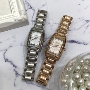 ダイヤルは大人っぽいスクエア型で、軽くカーブを描いた形状が柔らかく上品な印象を与えてくれます。