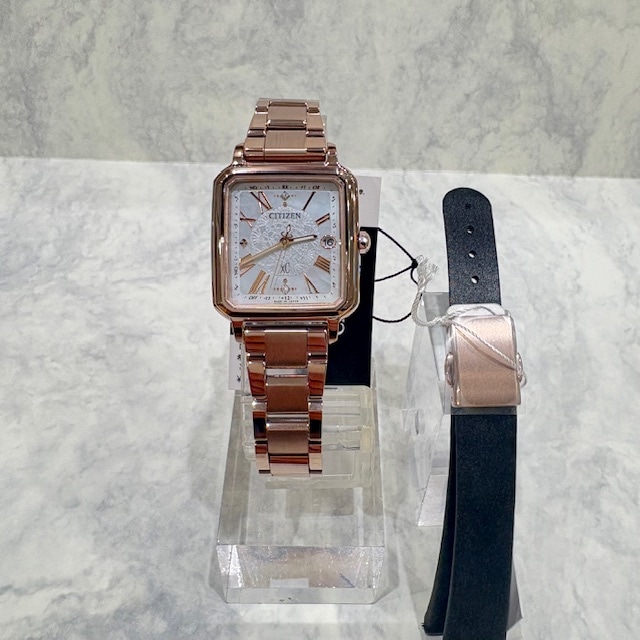 サクラピンクのケースに白蝶貝文字盤を組み合わせたモデル。