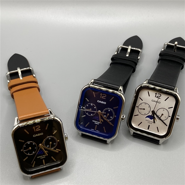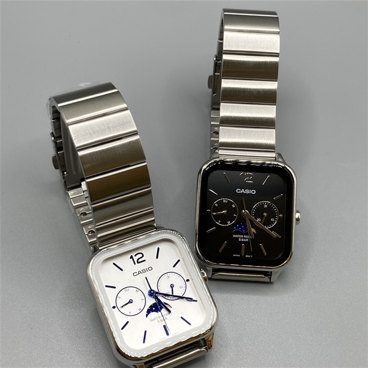 角を丸くした少し大きめのケースデザインに、6時位置のムーンフェイズが印象的。