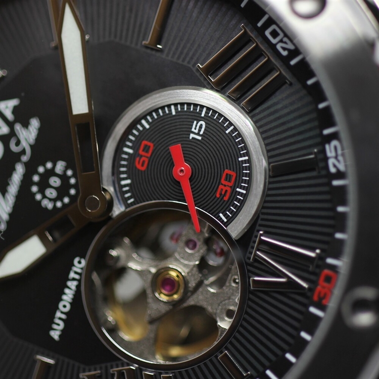秒針にはレッドを採用。