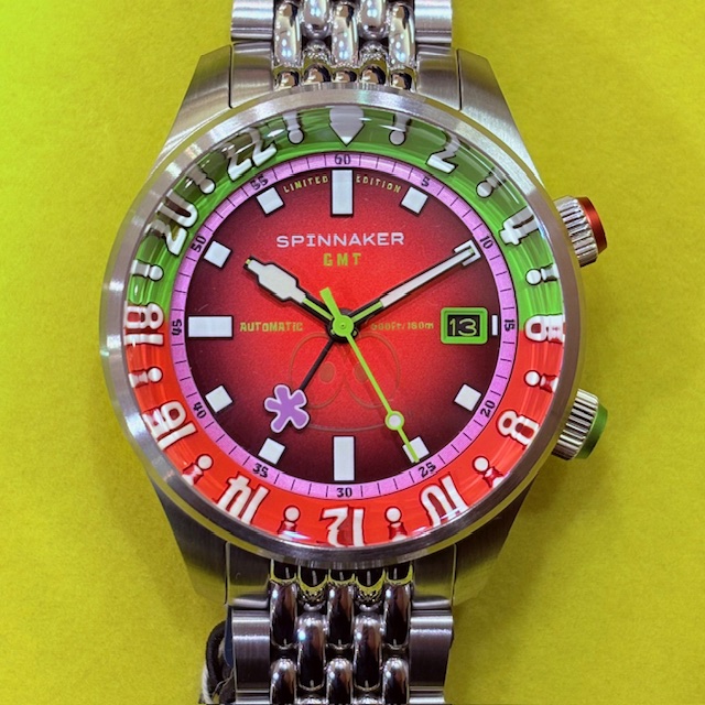 ベースモデルの「ブラッドナーGMTオートマティック」の特徴のひとつは、インナーベゼルが回転するコンプレッサーケース。1950年代に登場した歴史深い機構であり、2時位置にあるリューズを回すと、ケース内部のインナーベゼルが回転する仕組みです。高い気密性を維持したままインジケーターとしての機能を付与でき、多くのダイバーズウォッチに利用されてきました。ベゼルは昼夜を分かつ2トーンで彩られ、キャラクターを象徴するカラーを採用しています!