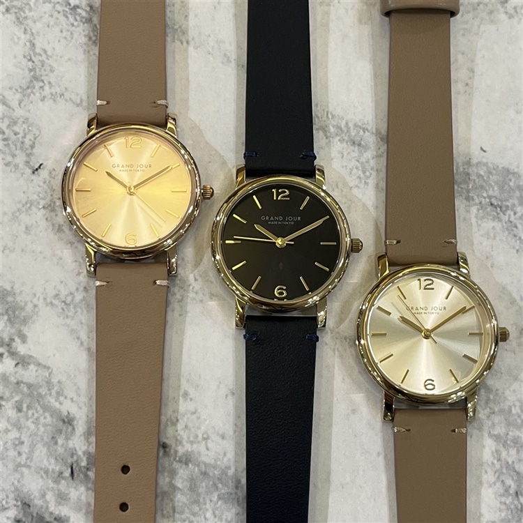 光が当たると文字盤のサンレイ加工がふわっと輝き、手元が一気に華やかに。