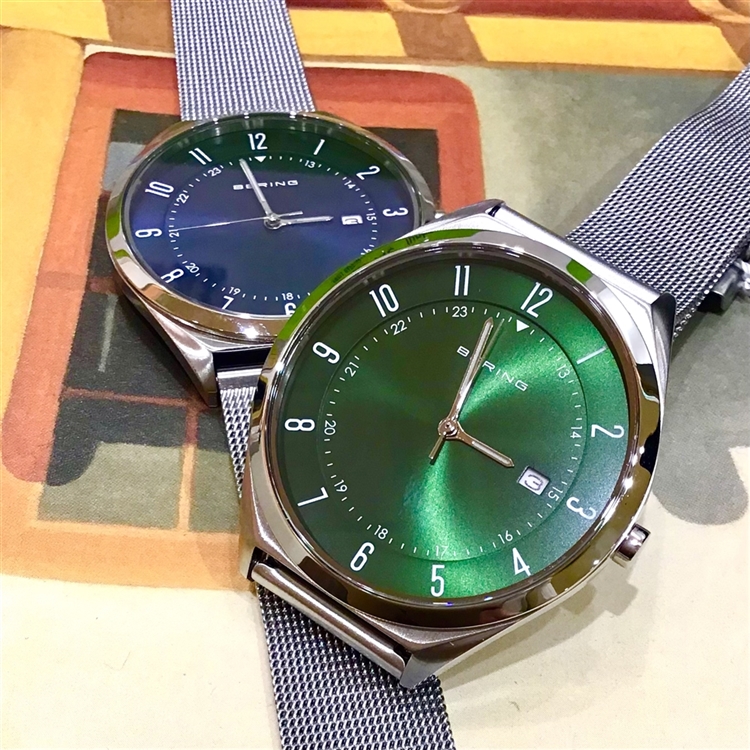 文字盤がグリーンの腕時計、
