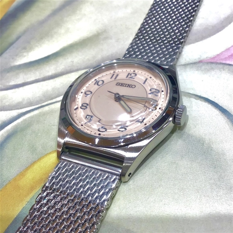ピンクの文字盤。
