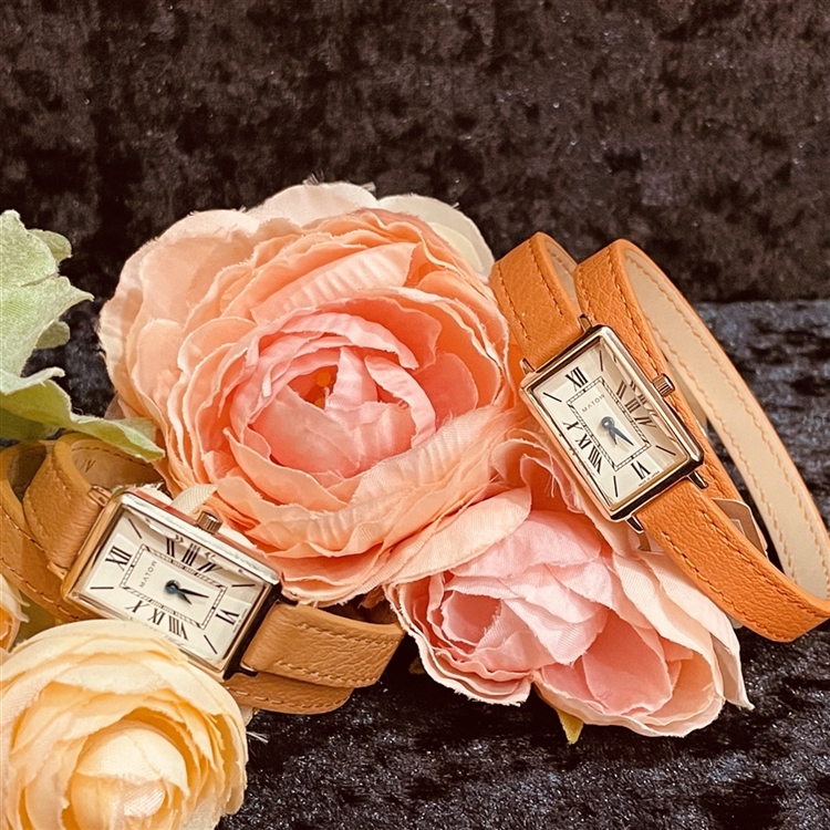 長めのレザーストラップが細くしなやかに2重に重なり、月が描く静かな流れのような優雅な印象に。