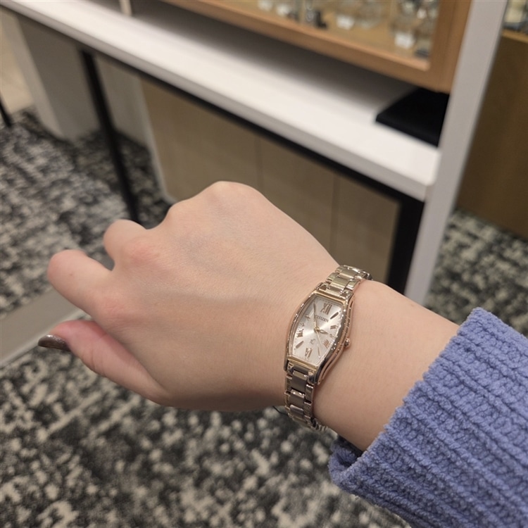 華やかなサクラカラーを纏った女性の腕元を知的に飾るエコ・ドライブモデル。