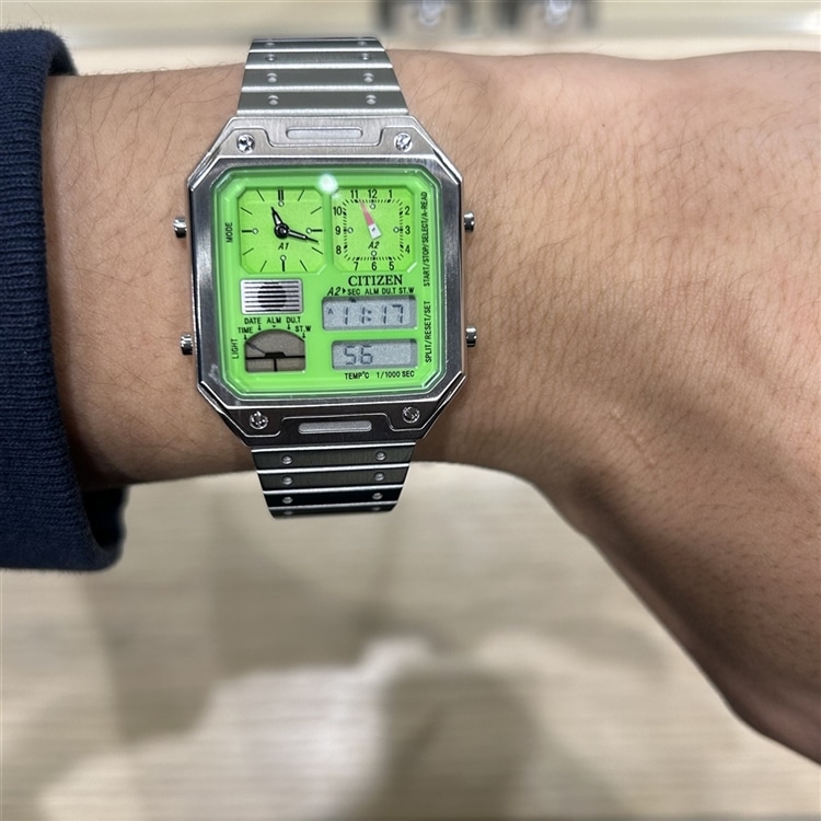 【CITIZEN RECORD LABEL】ポップなグリーンの文字盤に温度センサー搭載のコンビネーションウオッチのご紹介〈junks ルクア大阪店・梅田〉