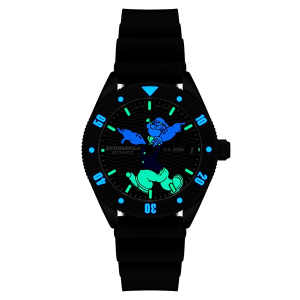 ベゼルやインデックスだけではなく、ポパイにも蓄光塗料を採用。