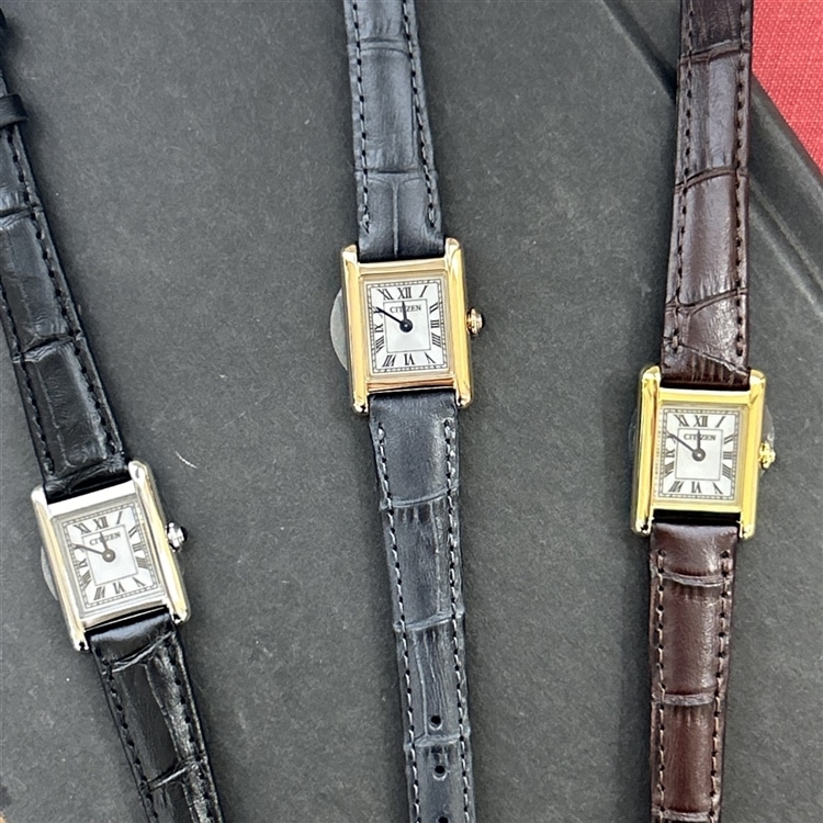 ヴィンテージ調の雰囲気を漂わせながらも、優しさと落ち着きを感じるデザイン。サイドに丸みを持たせたケースが、洗練された優しさを醸し出します。ローマ数字で統一したインデックスと型押しを施した牛革バンドが、落ち着きのあるクラシカルな表情を際立たせています。少し大きめのりゅうずが小ぶりなケースにアクセントを添えます。