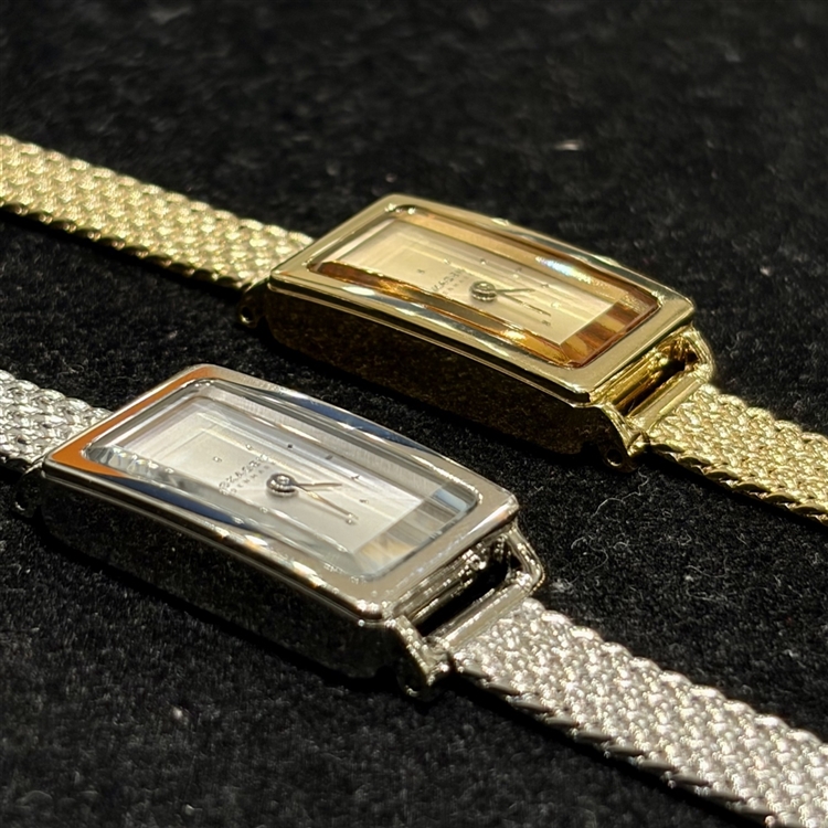 ゴールドトーンやステンレススチール製のレクタングルケースに、