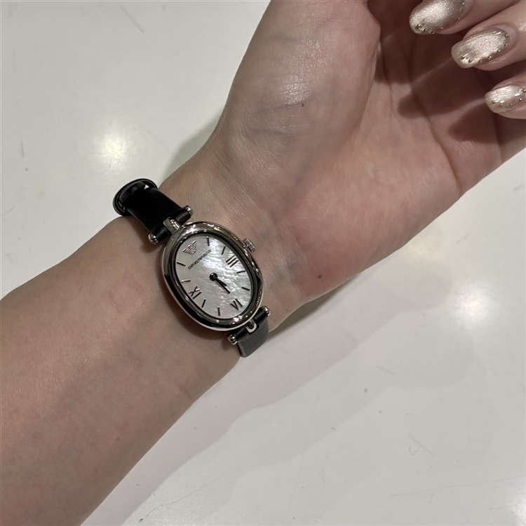 ブラックレザー✕シルバーケース✕白系文字盤はクラッシクな印象を与えます。