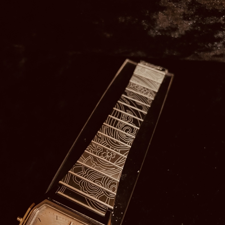 リバティの代表的なペイズリーファンファーレをバンド部分へレーザー刻印にて採用。