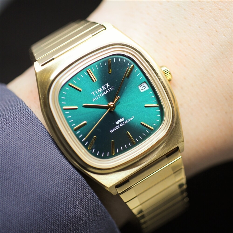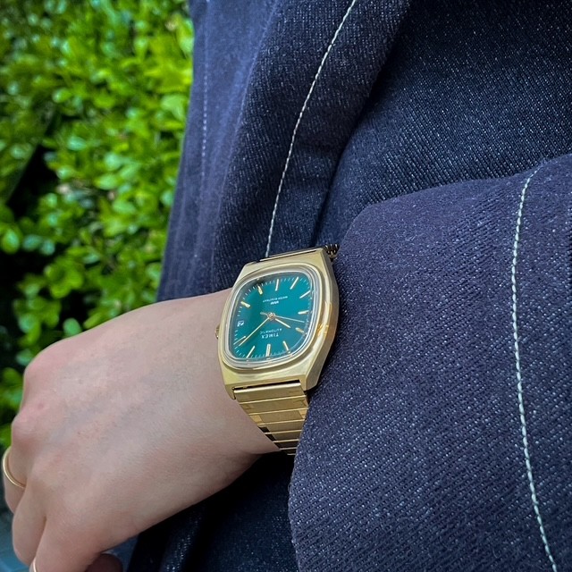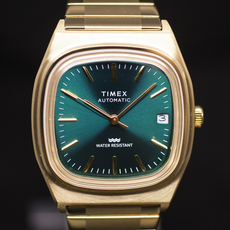 春に出たばかりの新色TW2Y67700はゴールドケースにサンレイ仕様のグリーンダイヤルが非常に美しい